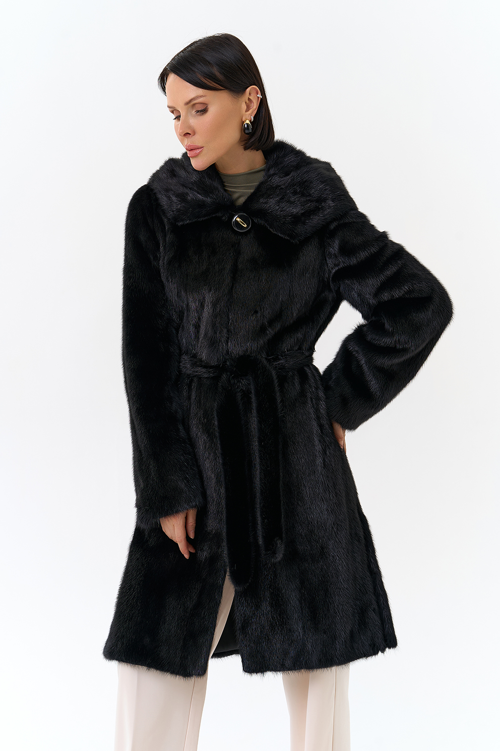 Норковая шуба прямая под пояс